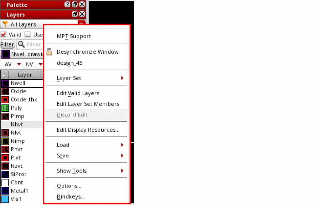 Lets you update the current display context with information from one of the following file types: LSW information file, technology file, or GDS number file. SKILL functions: pteLoadLSWInfo, pteLoadFromTechFile, pteLoadGDSNumber |
