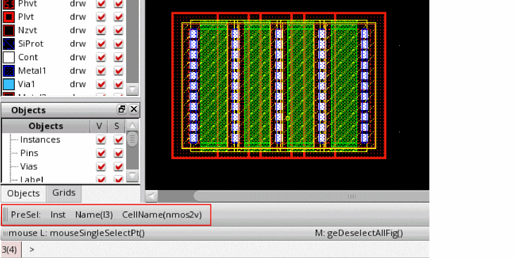 PreSel: Pin Term(TermName) Layer(layer purpose) Color LockState