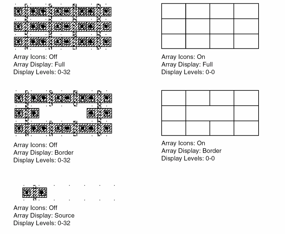 - Array Icons: Shows outlines of array cells when Display Levels suppresses cell details. When Array Icons is enabled and Display Levels is set to Start 0 Stop 0, outlines of array elements appear with no detail.