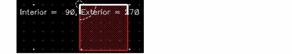 You can use the Show Angles command to view the angle enclosed at the intersection of two edges. The command displays both the interior and exterior angles. You can view the angles of a shape by selecting it fully or partially. The Show Angles command supports both pre-selection and post-selection modes.