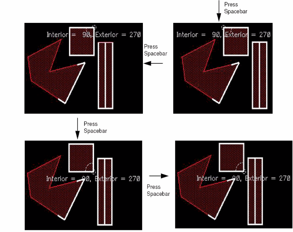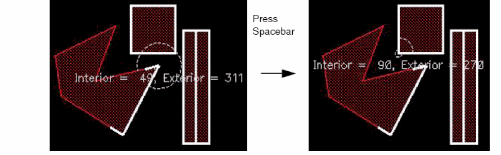 Continue to press the spacebar to view the angles at all the vertices of the shape in succession. If you select a shape partially, angles only at the selected vertices can be viewed.