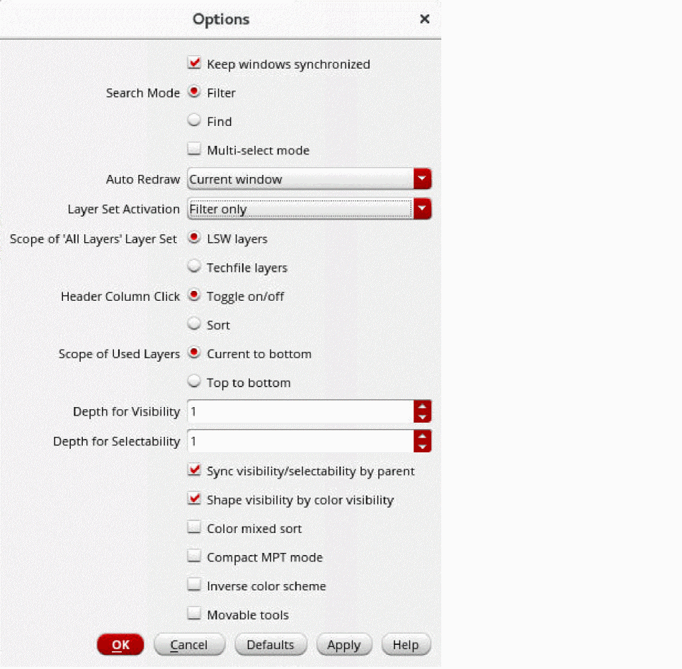 For Palette assistants, you can define local and global settings, such as the default search mode and the depth for visibility and selectability. The global settings are applicable to all Palette assistants across all layout windows.