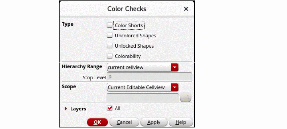 You can perform color checks using the Checks option on the Multiple Patterning toolbar.