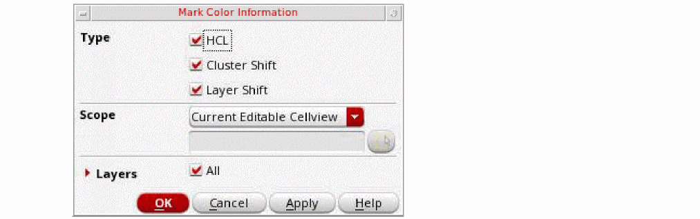 Choose Mark Color Info from the Last Operation drop-down list of the Multiple Patterning toolbar.