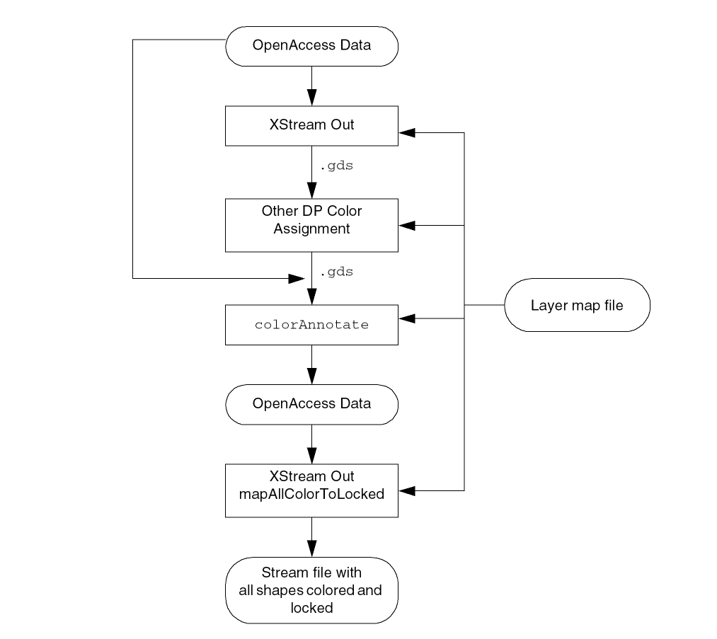Use XStream Out to translate the data to a Stream file (.gds) for input to the third-party color engine. For more information, refer to Design Data Translator’s Reference -