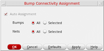 - Specify the nets to which the bumps are to be connected. The available options are:
