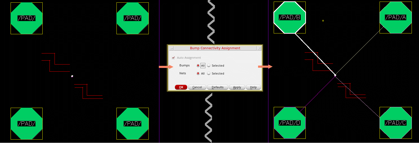 Bumps created on dies have to be connected to nets. Bumps are assigned to nets based on their proximities.