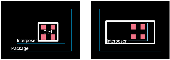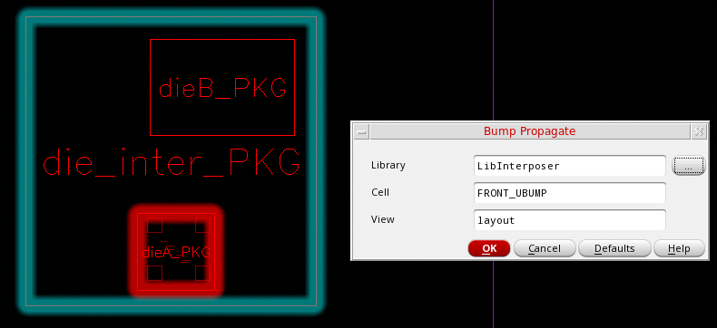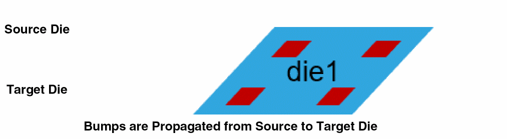 In the following example, die1 is the source die from which bumps are propagated to the target die, an interposer. In the final design, die1 is stacked on the interposer.