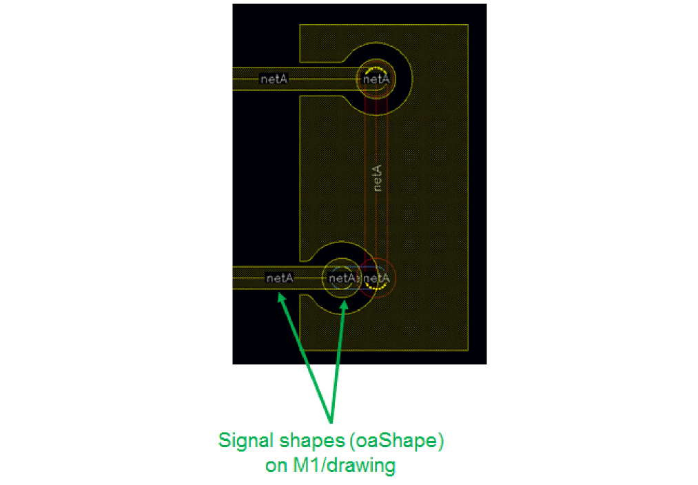 The Virtuoso RF solution includes a void generator that lets you generate void shapes in package layout designs. Void shapes are automatic shapes that insulate signal shapes (routing) from dynamic shapes such as power or ground planes. The power and ground planes are created on a dynamic purpose and the void shapes cut holes on the dynamic shape around the signal shapes. The effective conducting shape on power or ground is the Boolean subtraction of the void shapes from the dynamic shape.