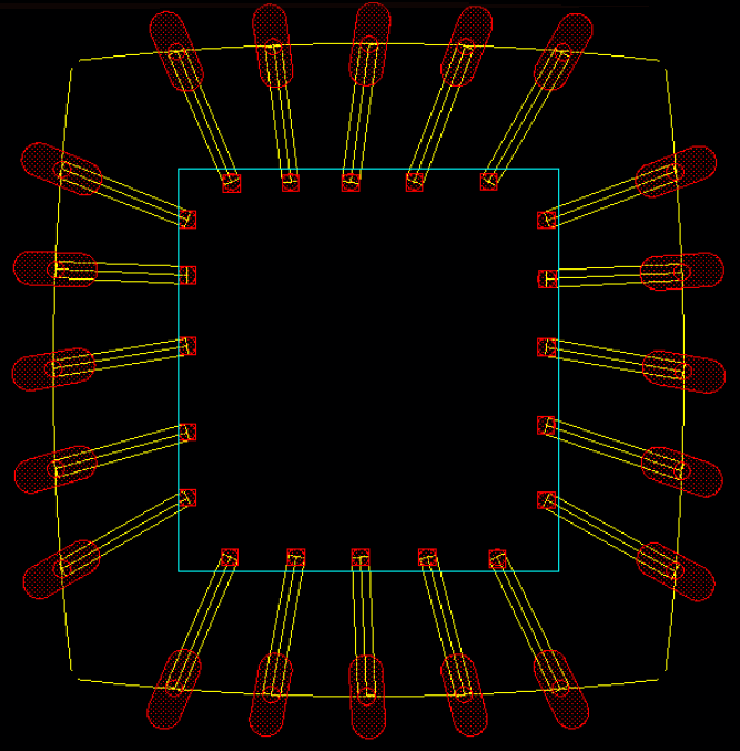 Follow steps 1 through 6 to create bond wires (and bond fingers) in all directions, as shown in the following image.