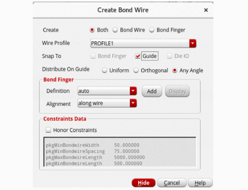 - Click the Honor Constraints check box to set a higher priority for constraints over the bond wire profile. By default, it is deselected to ensure that bond wire profile has a higher priority than the constraints.