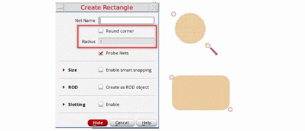 Specify the value for the Radius field. The smallest possible shape is a circle of the given radius.