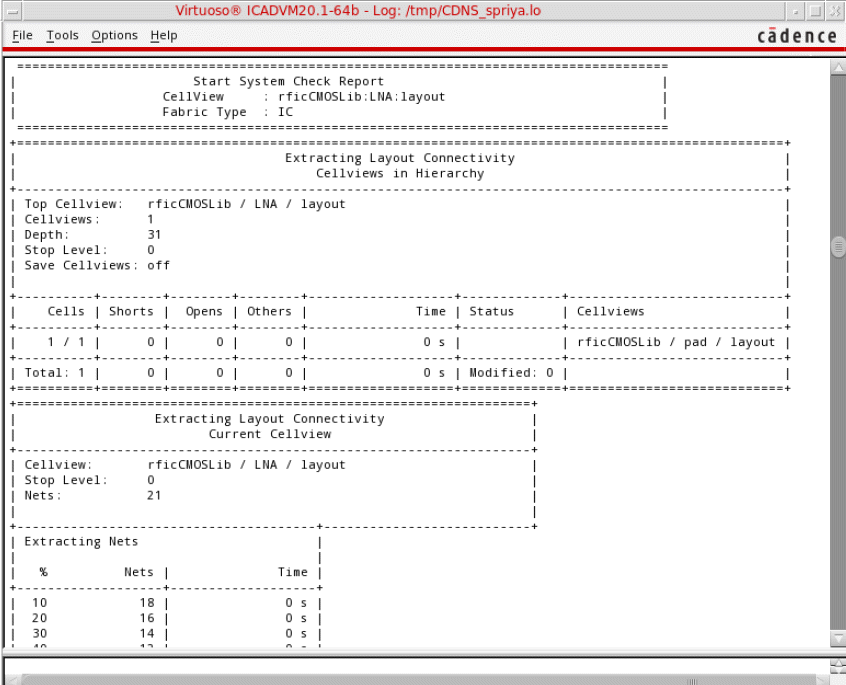 A detailed system check report is displayed in the CIW.