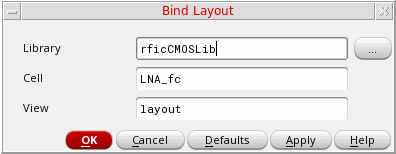 When a package layout is launched in Layout MXL, its persistent bindings are read and stored in memory. To view these bindings, choose Module – Bind Layout. The Bind Layout form is displayed, which provides information about the Library, Cell, and View of the layout to which the current package die is bound. The default values are the properties set by die export on the corresponding TILP. The Bind Layout form lets you bind die footprint instances to die layouts and package footprint instances to package layouts.