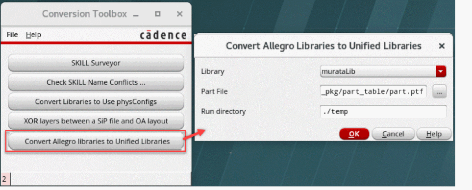 Click Tools – Conversion Toolbox – Convert Allegro libraries to Unified Libraries in the CIW. The Convert Allegro Libraries to Unified Libraries form opens.