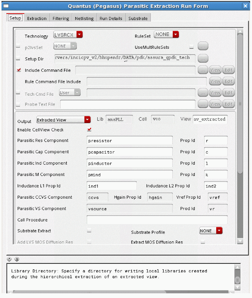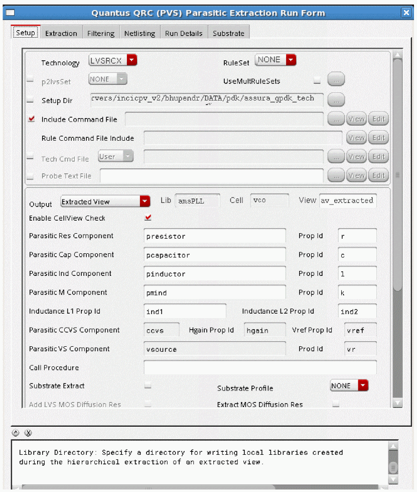 Figure 4-12 Quantus (Pegasus) Parasitic Extraction Run Form – Setup TabFigure 4-13 Quantus QRC (PVS) Parasitic Extraction Run Form – Setup Tab