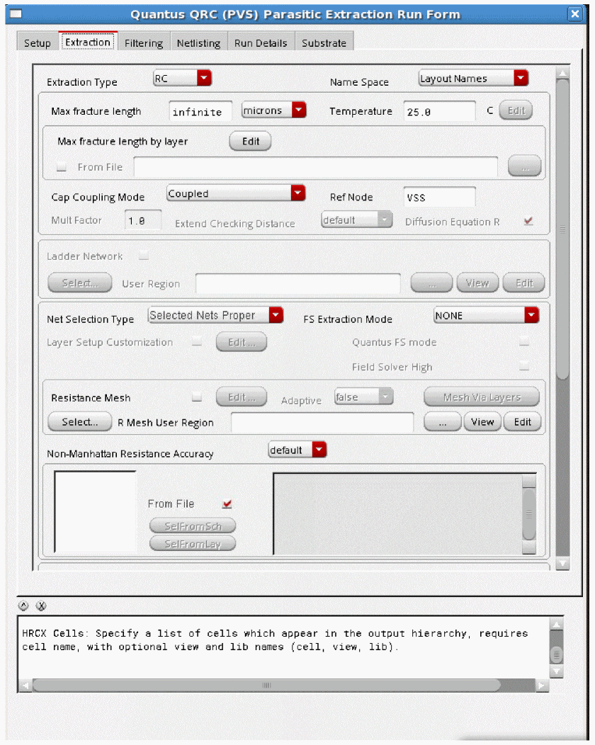 Figure 4-14 Quantus (Pegasus) Parasitic Extraction Run Form – Extraction TabFigure 4-15 Quantus QRC (PVS) Parasitic Extraction Run Form – Extraction Tab
