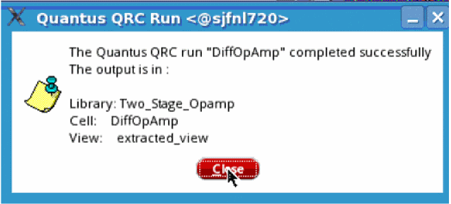 Click Apply. The Quantus extraction run will start. At the end of the extraction run, the following window opens to show the status of the run.