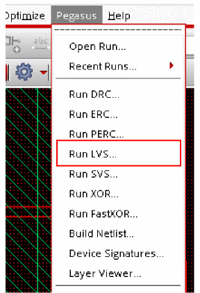 Figure 4-2 Run LVS Menu from Pegasus MenuFigure 4-3 Run LVS Menu from PVS Menu