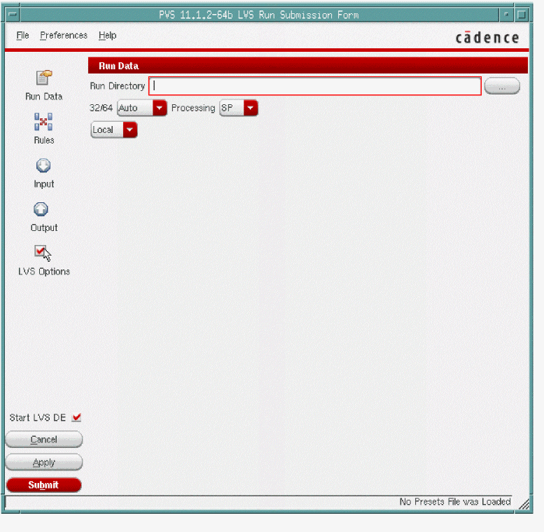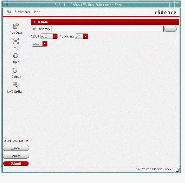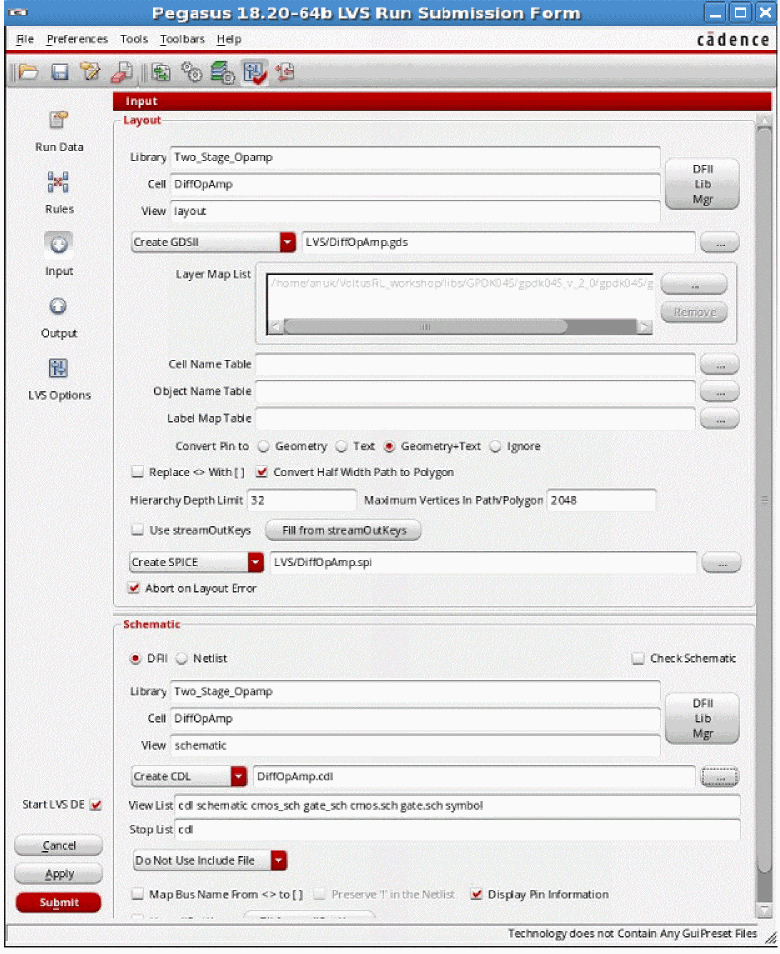 Figure 4-4 Pegasus LVS Run Submission FormFigure 4-5 PVS LVS Run Submission Form