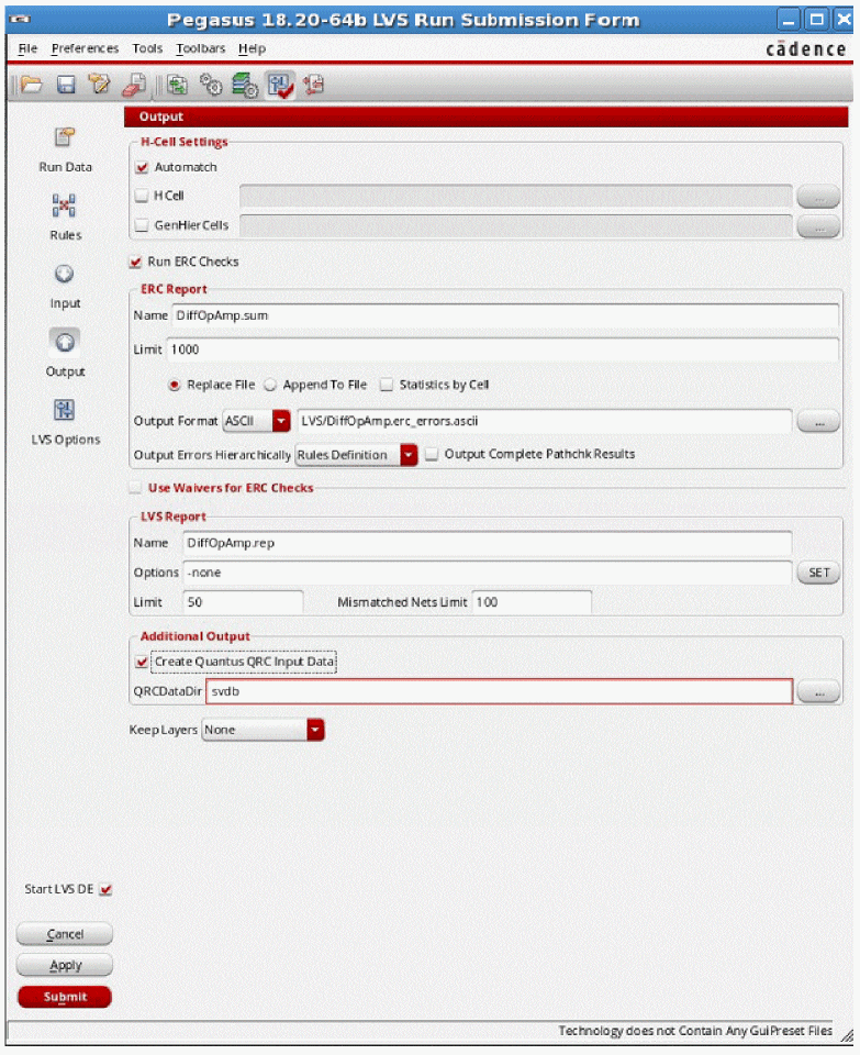 - Specify the Pegasus/PVS Data Directory and the Quantus/Quantus QRC Tech Lib.