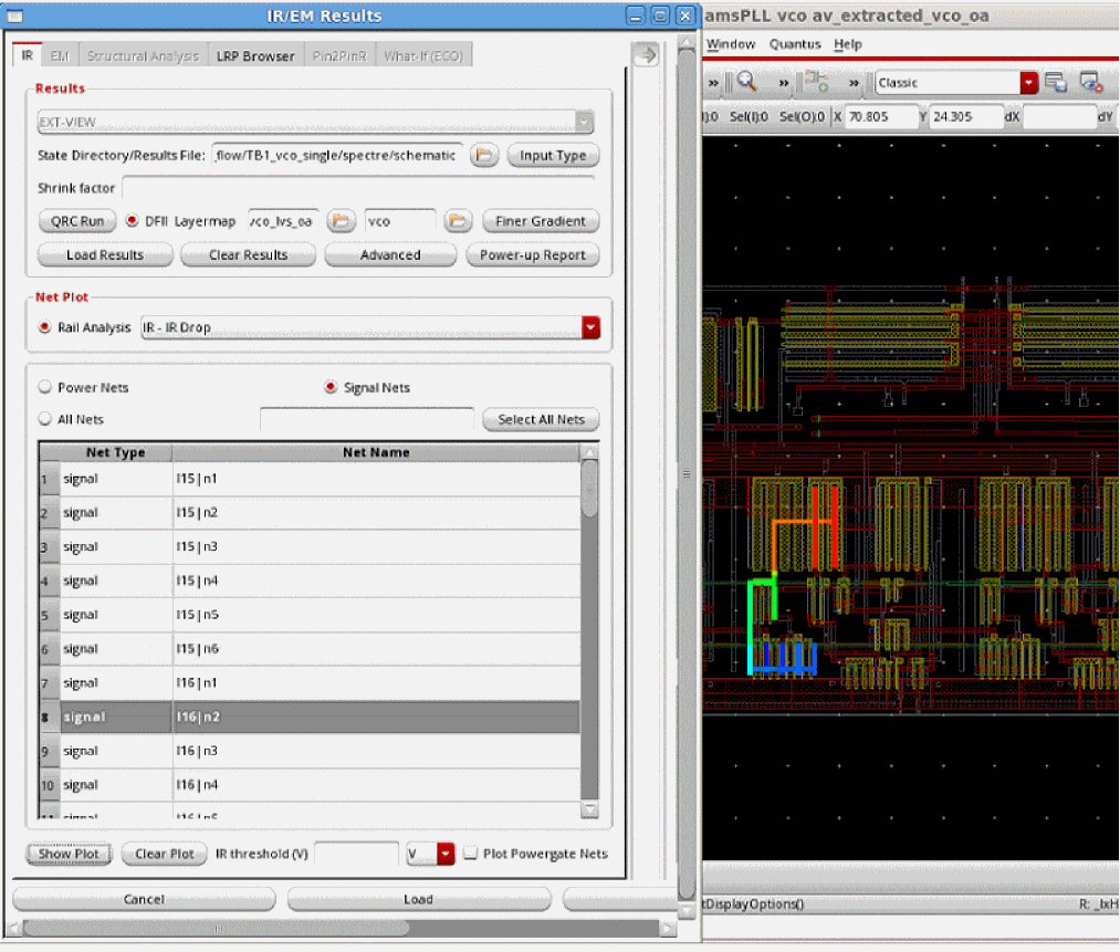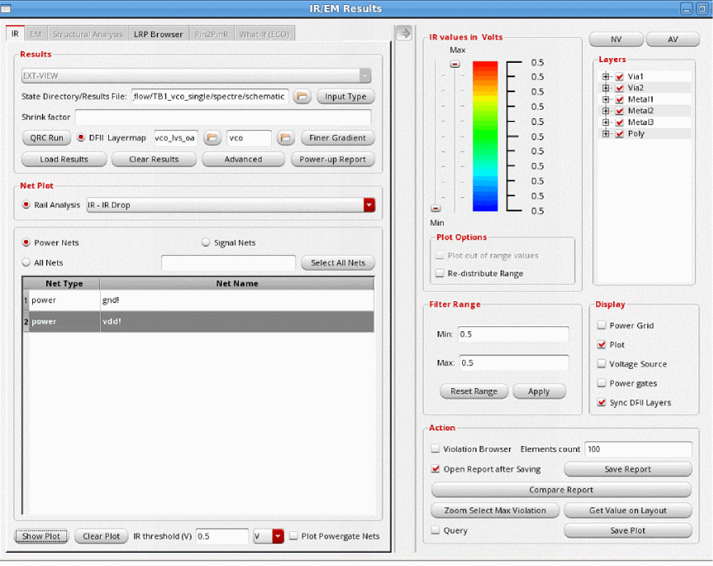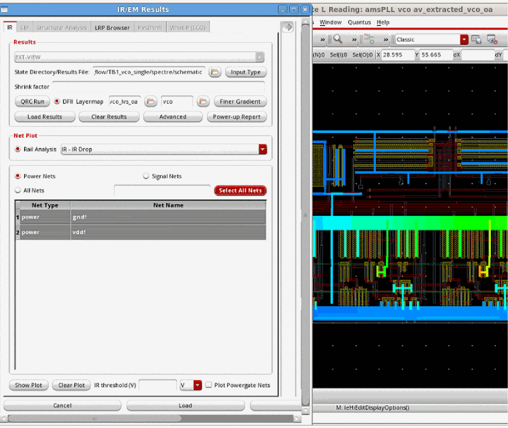 Voltus-Fi-L uses the results of the simulation performed using the vavo-db or the parameter storage format (PSF) data to perform IR drop and EM analysis. The software provides both batch mode and GUI support for performing these analyses.