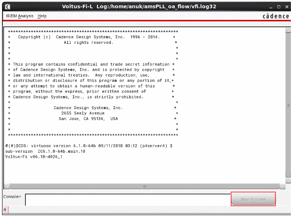 The Voltus-Fi-L product is launched within the Virtuoso Platform. To use this product, you must have the Virtuoso IC 6.1.8 release version.