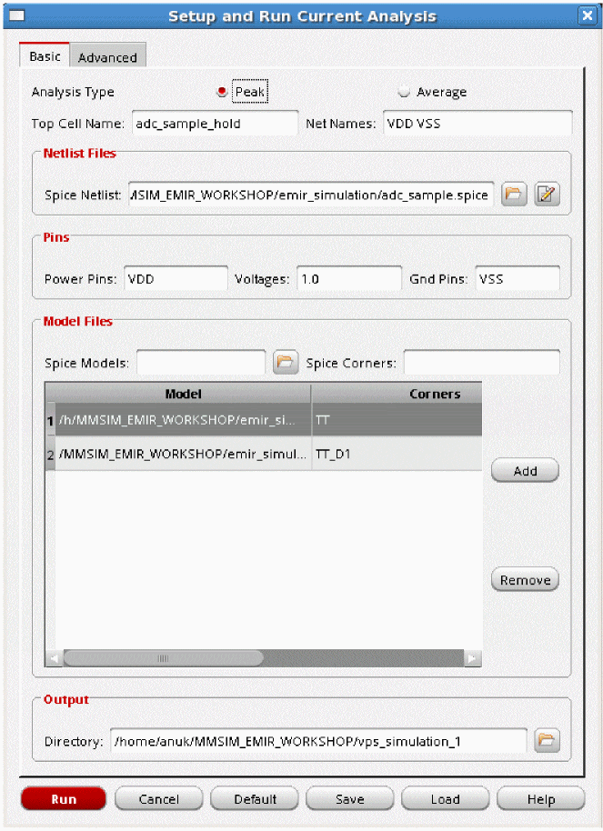 - In the Model Files group box, choose the Spice Models and the corresponding Spice Corners used by the SPICE netlist.