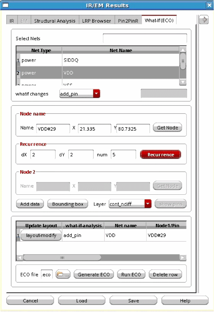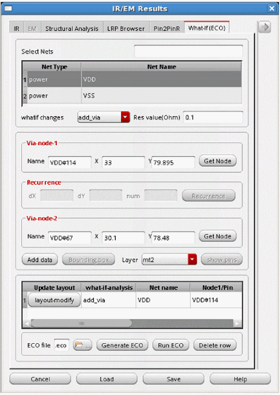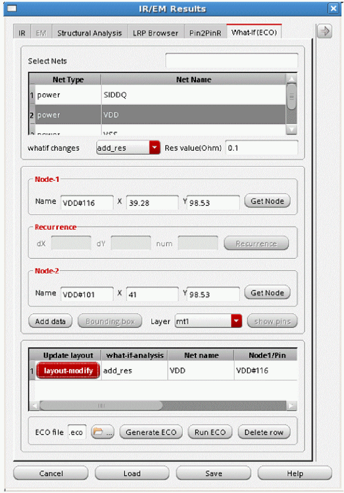 For this, load this simulation database—with ECO changes—when loading the IR drop analysis results on the IR tab of the IR/EM Results form.