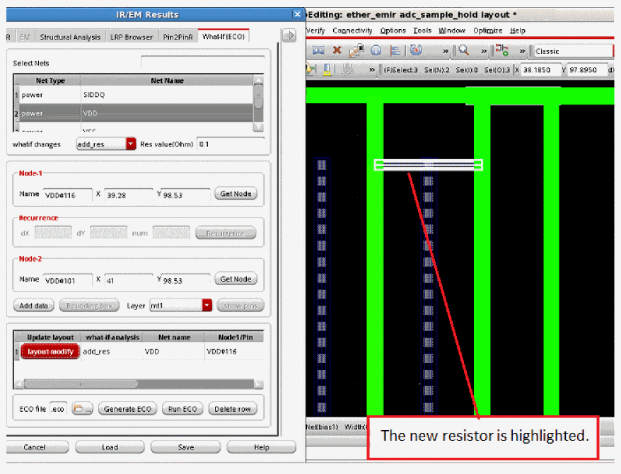 - Select add_res ECO command from the Whatif changes list.