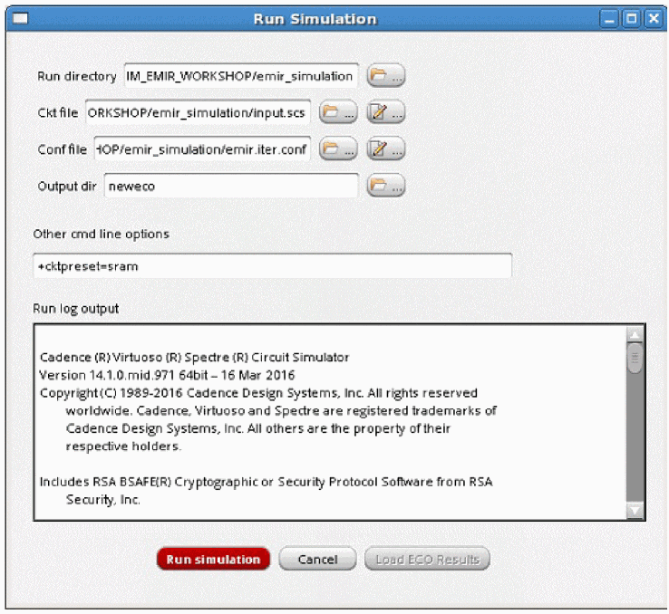 Now, when you click Run Simulation, the simulation runs using the above newly-generated conf file that includes information about the ECO options.
