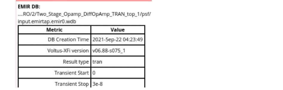Metadata on EM-IR Results Database - Opens the following form that gives the metadata information about the EM-IR database, such as result type, simulation temperature, and hierarchy.