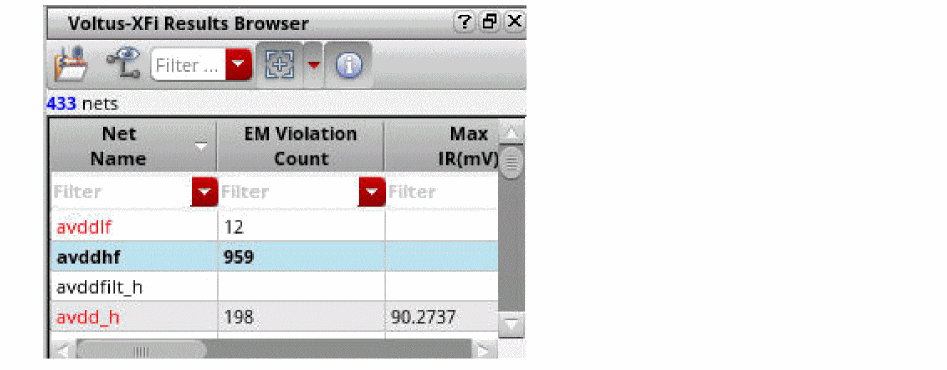 The Voltus-XFi Results Browser Graphical User Interface