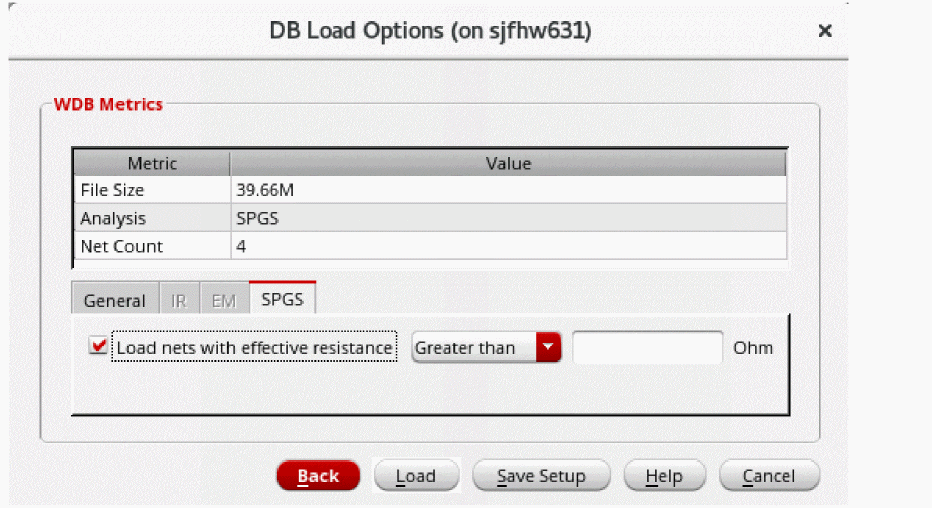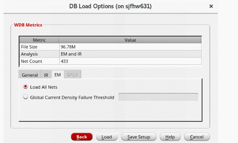 The Voltus-XFi Results Browser assistant allows you to perform the following to improve efficiency and speed when loading the analysis results: