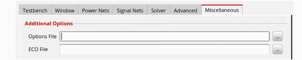 On the Miscellaneous tab, specify the additional options for the EM-IR run and the ECO file for what-if analysis.
