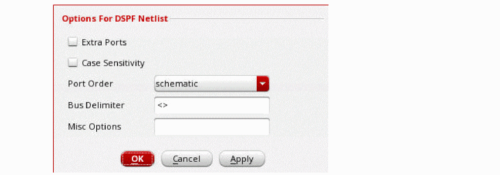 - Misc Options - Specifies additional options for the DSPF netlist.