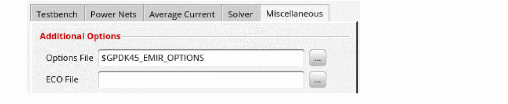 On the Miscellaneous tab, specify the additional options for the EM-IR run and the ECO file for what-if analysis.