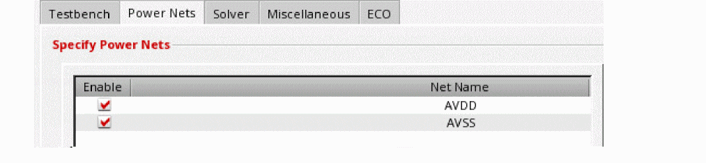 On the Power Nets tab, select the nets that you want to include in the analysis.