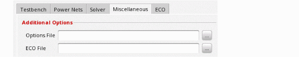 On the Miscellaneous tab, specify the additional options for the EM-IR run and the ECO file for what-if analysis. The ECO File option is supported only when the solver method is 2-Stage.