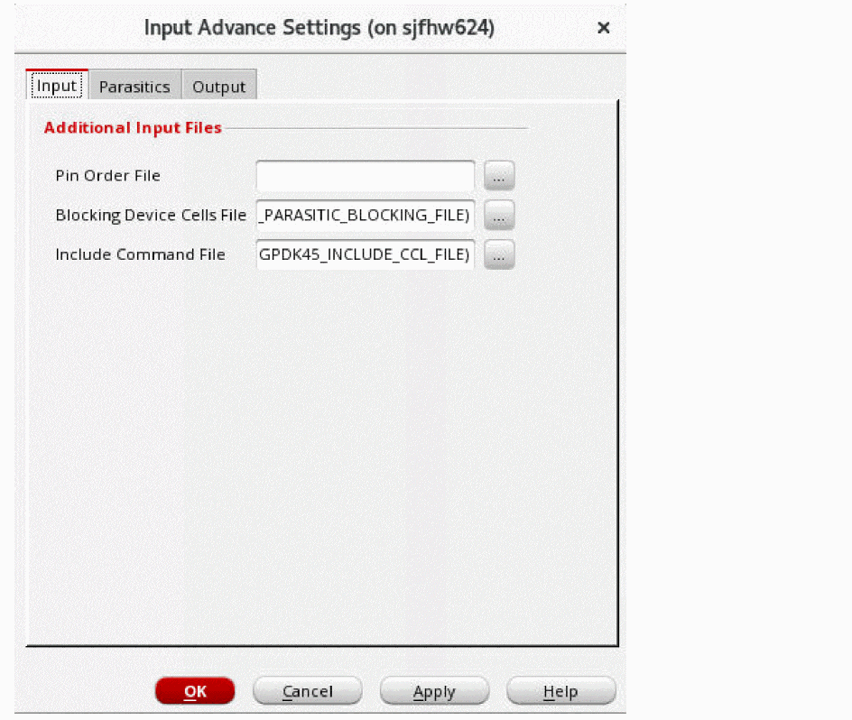 - Specify Blocking Device Cells File to list the parasitic blocking device cell names.