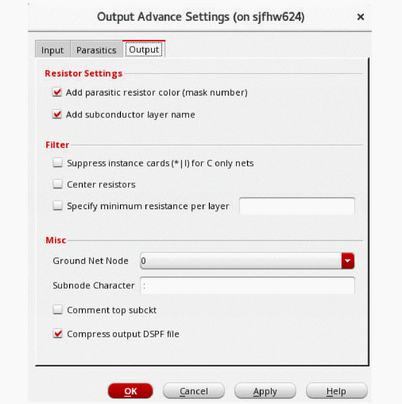 - Select Suppress instance cards (*|I) for C only nets if you do not want to print instance cards and the corresponding dummy resistors for the capacitance-only nets in the results.
