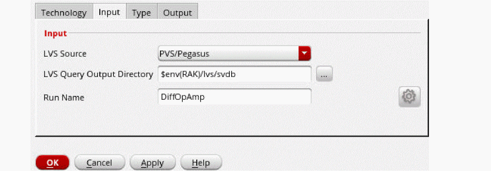 On the Input tab, select an input data source from the LVS Source drop-down list.