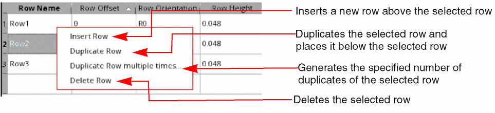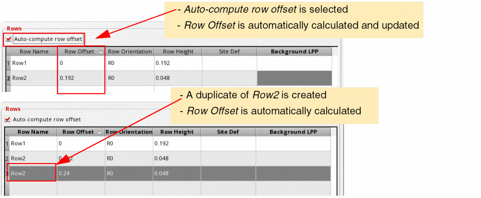 If Auto-compute row offset is selected, the row offset values are automatically adjusted such that rows are created next to each other, without any overlaps.