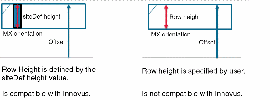 The following figure depicts the differences between the siteDef height and row height values: