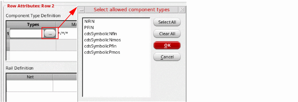 lib,cell, orviewvalue. For example, Master can be set to*/pfinFet/*for a p-type row or*/nfinFet/*for a n-type row. Default is*/*/*. -