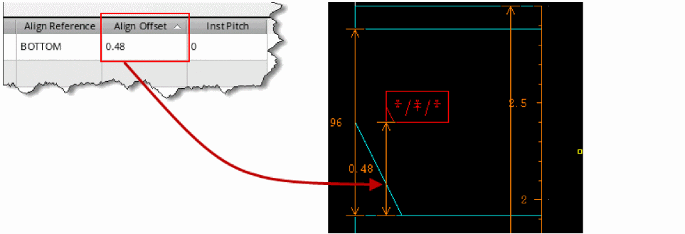 Specify an Align Offset value, which specifies the distance from the Align Reference edge that the components can be placed. In the following example, Align Reference is