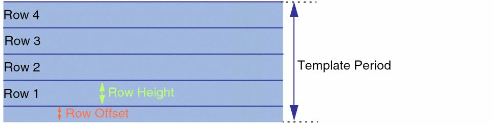 Specify the row Template Period. It is the sum of the heights of all rows in the template and the spacing between these rows. In other words, it is the distance after which the template repeats.