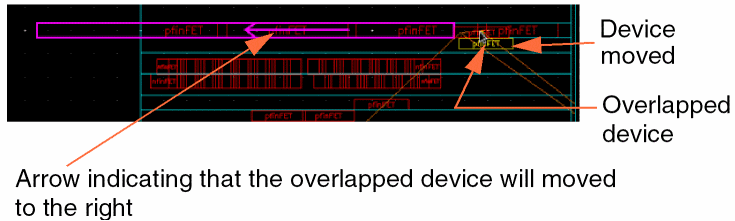 Moves the overlapped device by a minimum distance along the right or left directions within the same row as indicated below: ![]() Environment variables: spreadType, insertDefaultSpreadType |