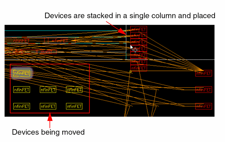 Stacks the selected devices vertically before moving them. The overlapped devices are moved to the right as shown below: ![]() Environment variable: spreadType |