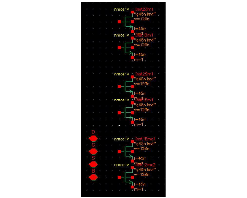 - The Stack Transistor device has a series of cascaded PMOS or NMOS devices inside.